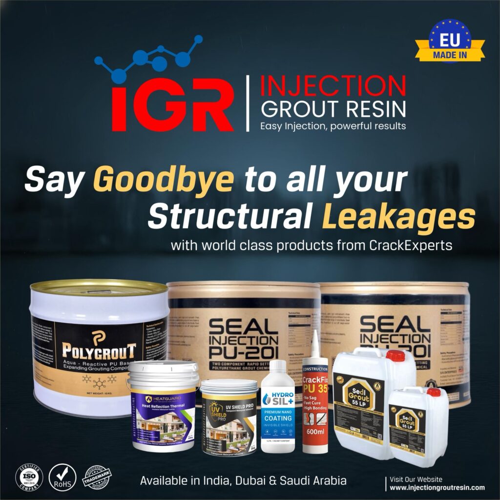 Best Injection Grout Resin Manufacturer CrackExperts is one of the leading manufacturers of Injection Grout Resins in India, UAE and Saudi Arabia delivering PU and Epoxy-based resin systems trusted for structural repair, waterproofing, and corrosion protection.