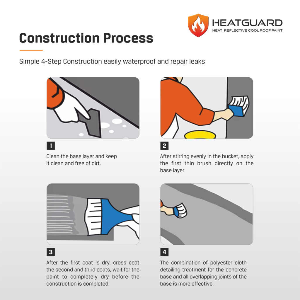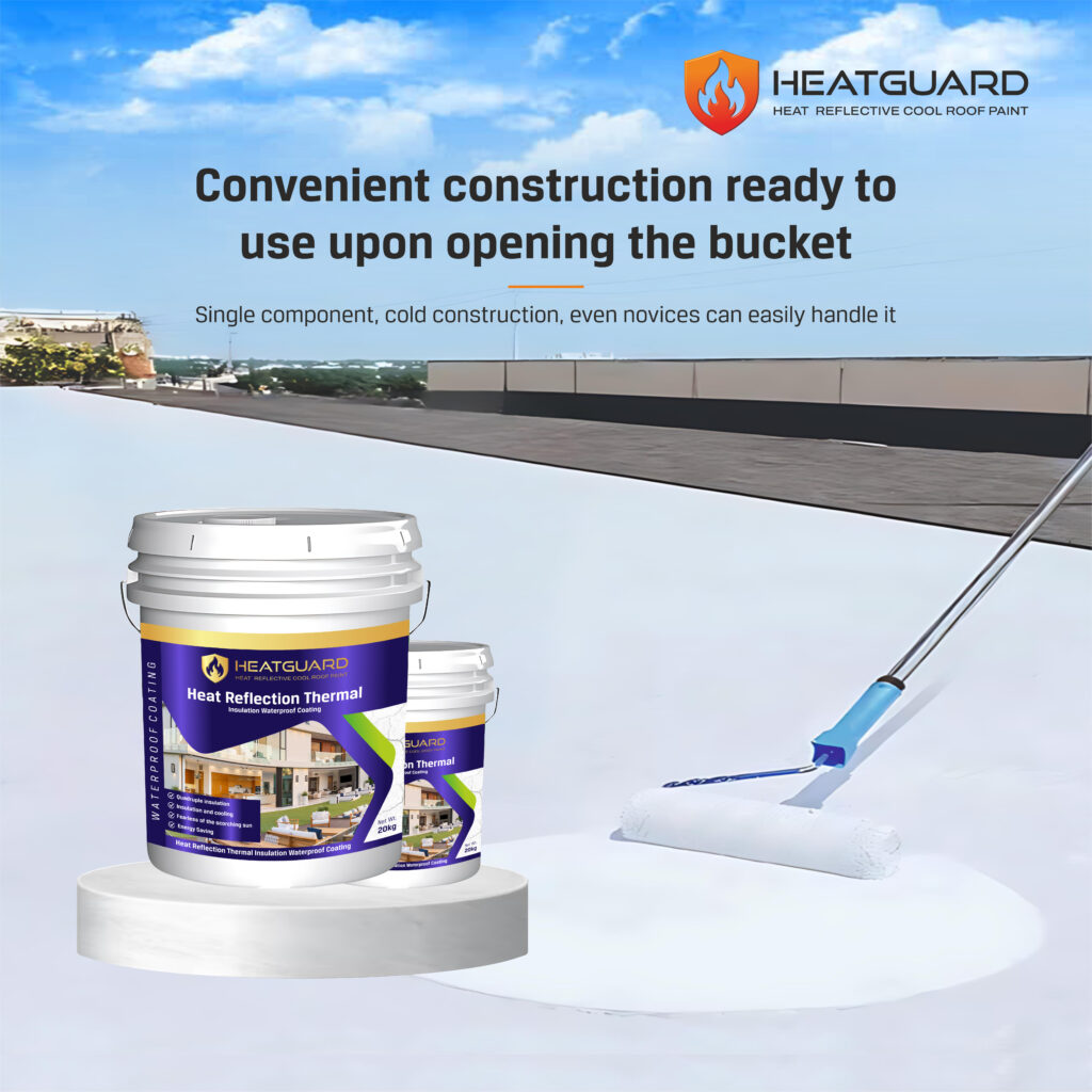 HEATGUARD is a high-performance, imported heat-reflective and thermal insulation waterproof coating. It provides quadruple insulation and cooling, allowing the surface to drop temperatures significantly.